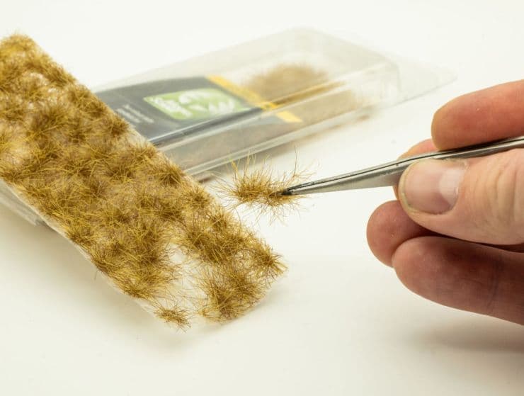 Each pack contains at least 100 individual tufts, all handmade, UV-stable, and ready to use. Simply peel a tuft off the backing sheet with tweezers and glue it in place – ideal for adding realistic vertical structure and variety to your landscape.